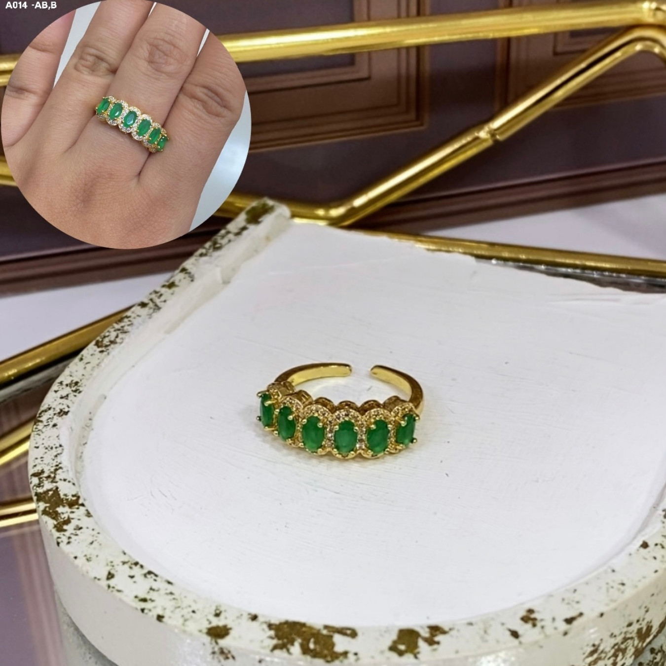 Anillo Semi Aro Piedras Verdes