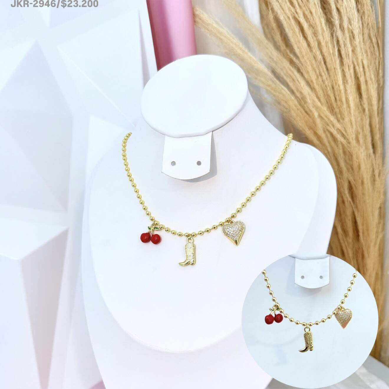 COLLAR 3 DIJES CEREZA, BOTA Y CORAZÓN