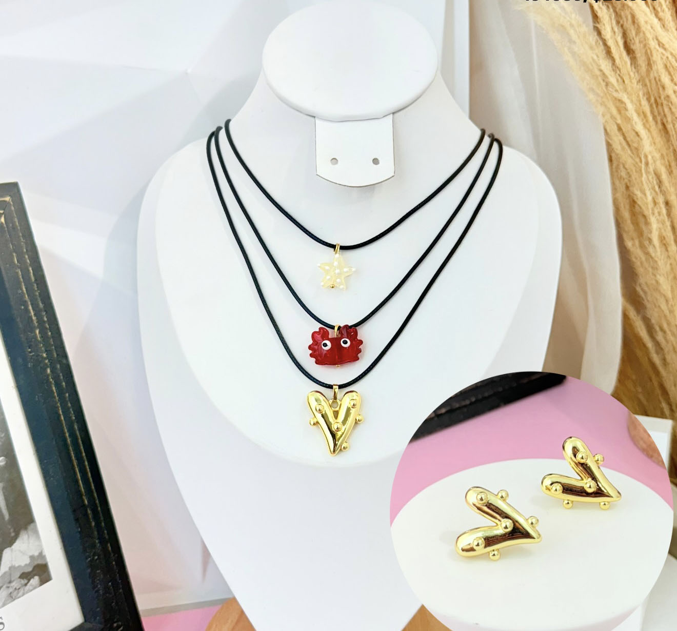 COLLAR LAYERING 3 CADENAS ROSA Y CORAZÓN