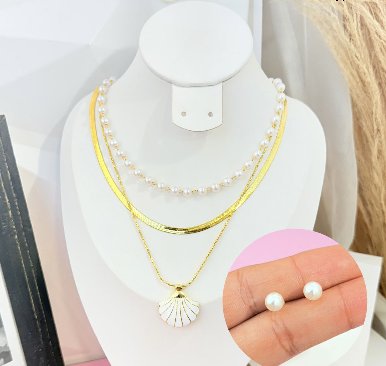 COLLAR ESPIGAS PERLA 45 CMS