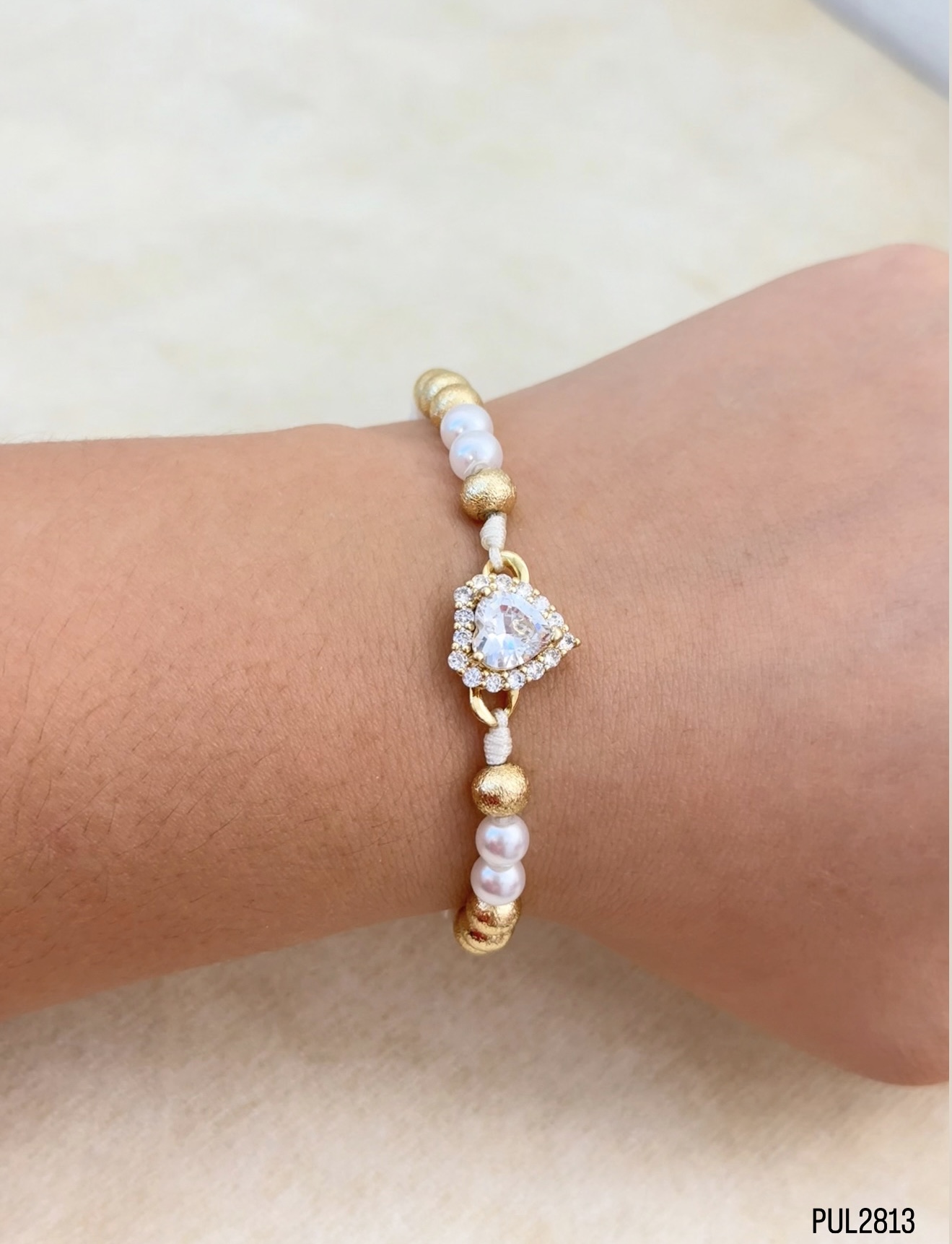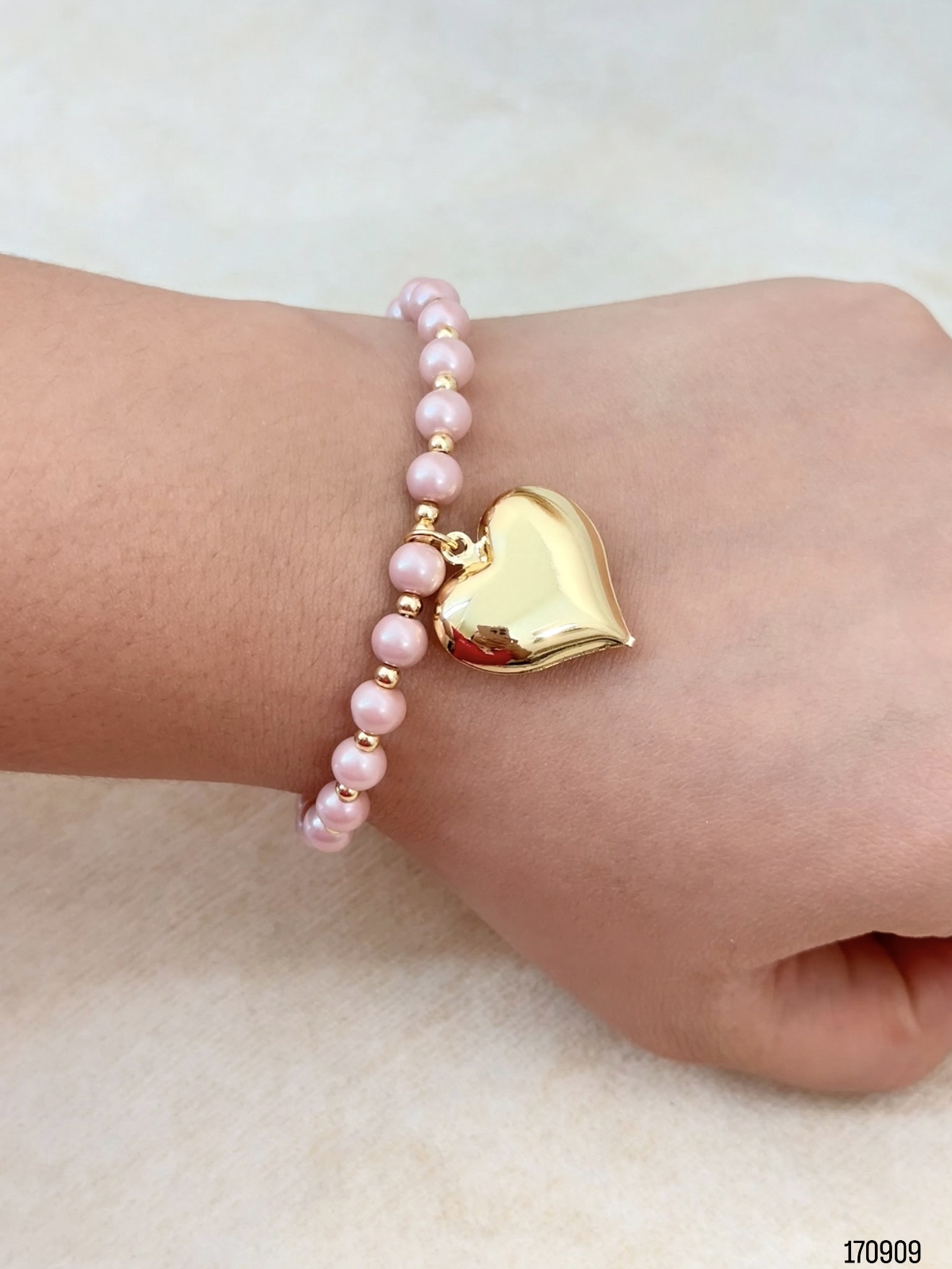 MZ PULSERA PERLA COLOR-BALIN LISO DIJE CORAZON