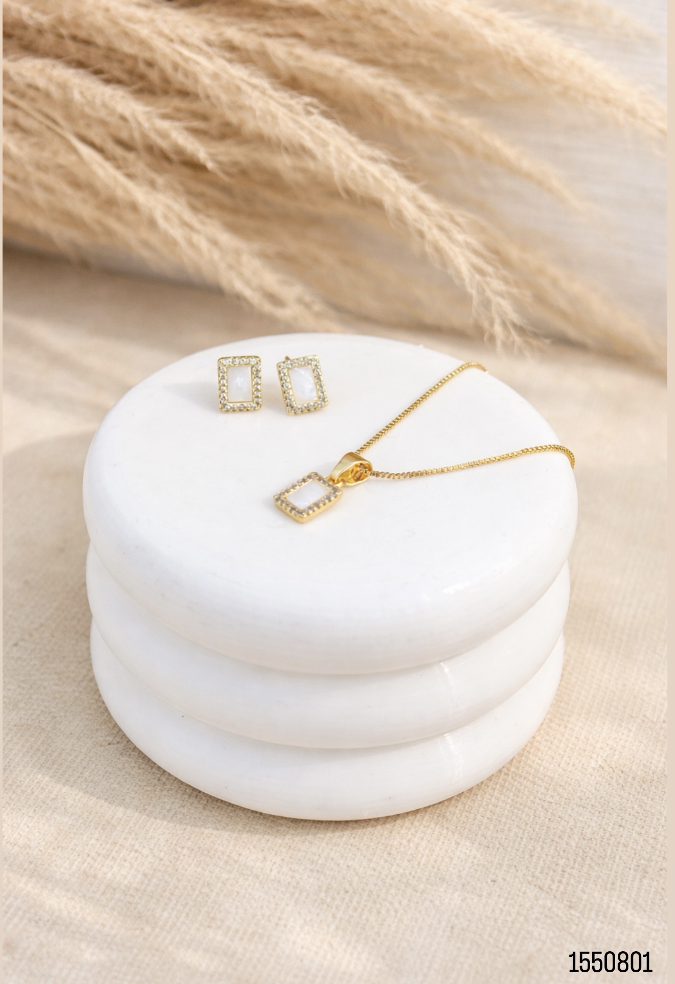SET TOPO DIJE PERLA CUADRADO